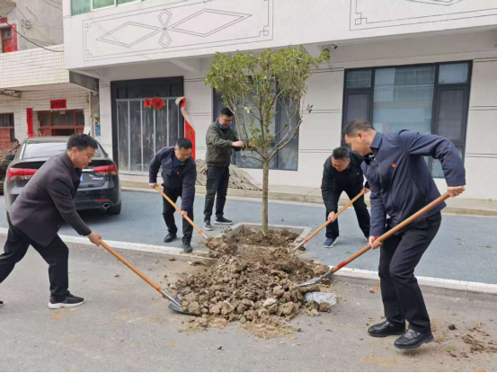 活动现场,红马甲与初春的绿意交相辉映,构成一道动人的文明风景线。大家分工明确、协作无间,挥锹铲土、扶苗定植、填坑踩实、浇灌培土,每一个环节都严谨细致、有条不紊。现场一派热火朝天、生机盎然的忙碌景象。一棵棵新栽的苗木迎风而立、错落有致,不仅为灵龙街道注入了蓬勃生机,更展现出米粮党员干部团结协作、担当实干的精神风貌。