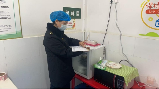 “食材采购台账请出示一下。”“食品留样记录需要每天核对。”在各学校食堂,商镇市监所的执法人员重点围绕原料贮存、加工操作、清洗消毒、食品留样等关键环节展开细致检查。