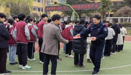 此次法治报告会上,青山司法所、派出所工作人员向师生们发放了《法治宣传教育法》、《民法典》、《防范电信诈骗》、《预防未成年人犯罪法》等法律书籍500余册。