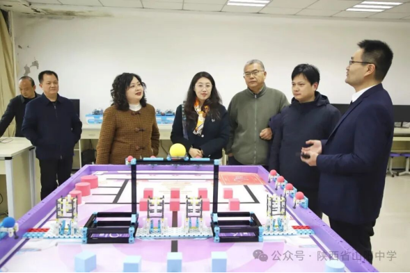 仪式结束后,与会领导、嘉宾共同参观山阳中学机器人社团工作室,实地查看设备配置与活动场地,对社团未来发展给予悉心指导。全体参会人员在尚德广场合影留念,定格苏陕协作、科教共进的温暖瞬间。