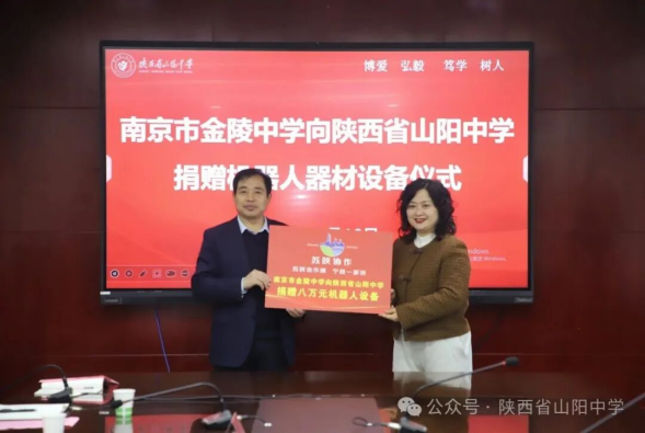 春风送暖,苏陕情深;科技赋能,逐梦前行。为深化苏陕教育协作,推动优质教育资源共享,助力山区学子科创梦想启航,2026年3月16日,情系山阳,智启未来——南京市金陵中学向山阳中学捐赠机器人设备仪式暨机器人社团成立大会,在山阳中学南校区隆重举行。跨越千里的爱心援助,正式开启两校科创教育携手共进的新篇章。