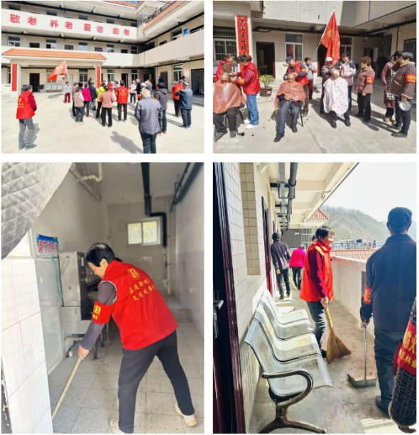 随后,志愿者们来到辖区内的黑山镇敬老院,为院里的老人们提供洗头、理发等服务。大家一边耐心细致地为老人打理头发,一边与他们拉家常、聊近况,现场气氛温馨融洽。与此同时,部分志愿者拿起扫帚、抹布,认真清扫院落、整理房间,让敬老院的环境更加整洁舒适。
