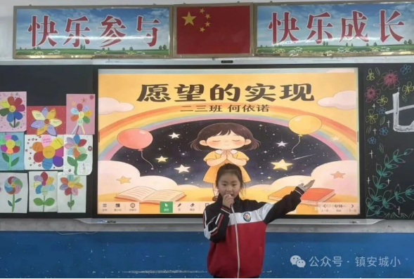 故事润心,童声传情阅读最美的姿态,是倾听与讲述。活动第一环节“撷一缕湖光,轻叩故事之门”温暖开启。孩子们化身小小朗读者与故事家,依次站上分享台,用清澈稚嫩的声音,讲述三本读物中的精彩篇章。从《七色花》里神奇的魔法与善良的选择,到《湖水睁着明亮的眼睛》中自然的灵动与生命的美好,再到《愿望的实现》里亲情的温暖与成长的感悟,每一段讲述都真挚动人,每一个故事都直抵人心。孩子们在故事中感受真善美,在文字中汲取力量,让经典浸润心田,让书香伴随成长。