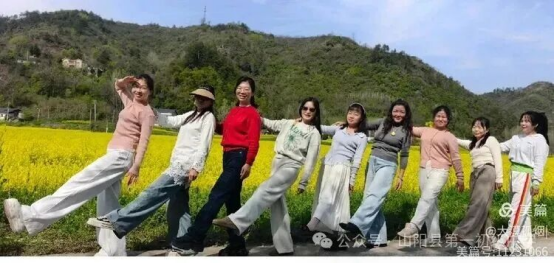 别金色花海,我们走进古韵悠悠的乡村。田间小路蜿蜒向前,白墙黛瓦错落有致,潺潺溪水绕村而行,古朴村落里满是烟火诗意。稍作休整,热闹的团建活动正式拉开帷幕,我们手拉手围成一个圈,跳舞、游戏,欢笑声此起彼伏,汇成一曲欢快的春日交响乐。