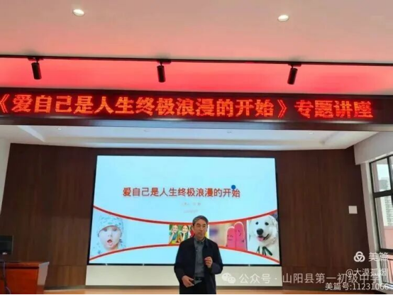 为缓解教师职业压力,守护教师心理健康,3月18日,学校特邀国家级心理咨询师李静老师开展“爱自己是人生终极浪漫的开始”专题讲座,全体教师参会。讲座由管校长主持,李静老师结合教师职业特点,用鲜活案例、实用技巧,引导老师们科学识别、疏解情绪压力。老师们认真聆听、收获满满。讲座为教师搭建了舒缓压力的平台,传递了学校的暖心关怀,助力教师以阳光心态投身教育工作。