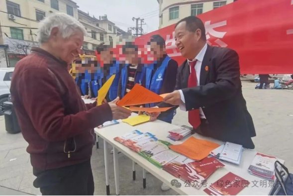 现场,循环播放的《中华人民共和国生态环保法典》音频、图文并茂的宣传册、悬挂的醒目横幅,共同营造了浓厚的法治氛围。更引人注目的是,司法干警与法官化身“讲解员”,对法典颁布的重要意义和亮点进行权威解读;而社区矫正对象则从“被监管者”转变为“普法志愿者”,他们身穿蓝马甲,面带微笑,向过往群众发放宣传品,甚至结合自身经历“以身说法”,用朴实的语言提醒大家守护绿水青山的重要性。这种“角色转换+情景普法”的模式,不仅将生态环保的理念精准传递给了辖区群众,为即将施行的《生态环保法典》营造了良好社会氛围,更让社区矫正对象在服务社会的过程中,深刻理解了“环保卫士”的责任与担当,实现了法治意识与社会价值的双重提升。同时,活动巧妙结合清明节前森林防火工作,进一步延伸了普法宣传的时效性与针对性。