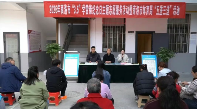 春风浩荡传美德,体育惠民践初心。为深入传承和弘扬雷锋精神,扎实推进“五进三送”惠民活动走深走实,助力全国文明城市创建。3月27日,由商洛市体育局主办、商洛市全民健身服务指导中心承办的2026年“3·5”学雷锋纪念日主题志愿服务暨全民健身系列活动在商州区城关街道东关社区举办。