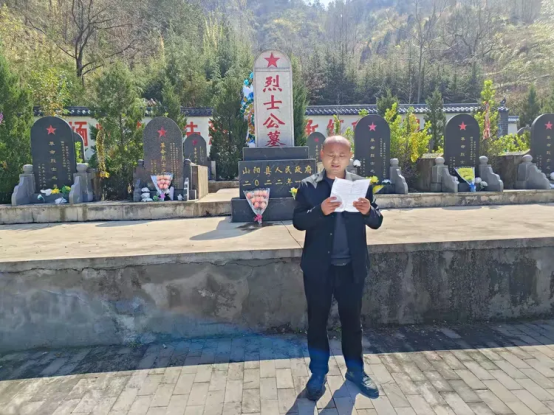 敬献仪式后,全体人员肃立,为革命烈士鞠躬默哀,低头追思先烈们为祖国解放、人民幸福英勇献身的光辉事迹,深切缅怀他们的不朽功勋。默哀毕,副校长张淞为全体师生宣讲英烈故事,开展革命传统教育,带领大家重温那段波澜壮阔的峥嵘岁月,让师生们深刻感悟革命先烈的家国情怀与奉献精神。