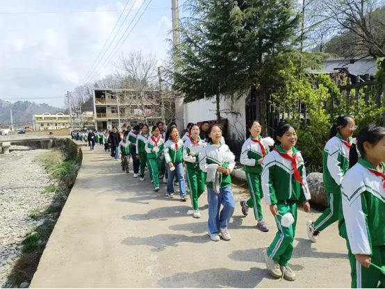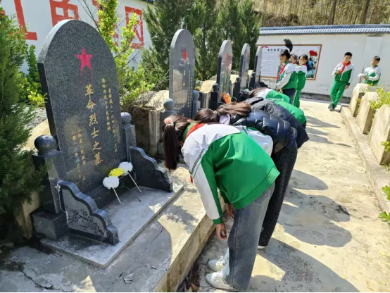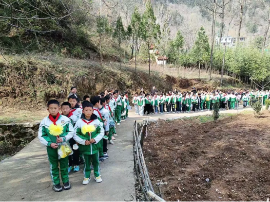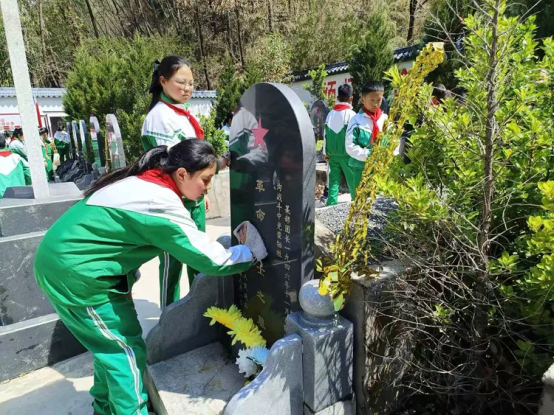 春风拂松柏,哀思寄英魂。师生们衣着整洁,党员教师佩戴党徽,少先队员身着校服、佩戴红领巾,排着整齐的队伍,迈着坚定的步伐从学校步行前往烈士墓安置点。往返途中,各班班主任组织学生唱响《没有共产党就没有新中国》《少先队队歌》《红星歌》等红色歌曲,嘹亮的歌声回荡在道路两旁,传递着师生们对革命先烈的崇敬与热爱。
