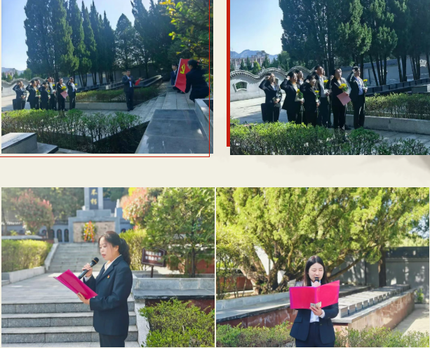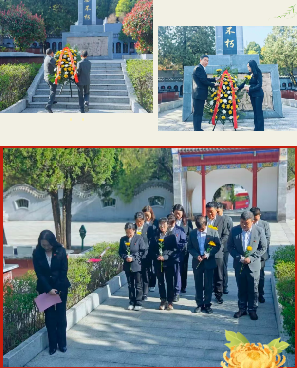 随后,大家手持黄色菊花,缓步走向烈士纪念碑和墓区,依次敬献鲜花、低头致敬,寄托对革命先烈的无限追思。献花结束后,全体人员自由瞻仰革命烈士纪念碑、烈士墓,认真观看烈士事迹介绍,重温革命历史,接受红色文化的深刻熏陶。