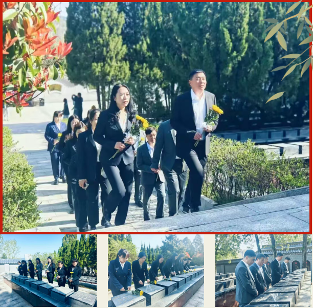 全体人员身着正装、党员佩戴党徽,全程庄严肃穆。在庄严的《献花曲》中,支部委员孙仁富同志、李祖喜同志代表全体党员向革命烈士敬献花篮,支部书记肖静同志缓步上前整理缎带,向长眠于此的革命先烈致以最崇高的敬意。随后,全体人员低头默哀一分钟,追思先烈们为国家和民族解放事业浴血奋战、无私奉献的英勇事迹,寄托深切哀思。