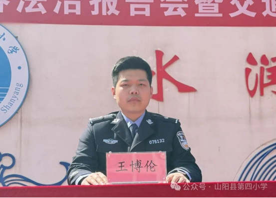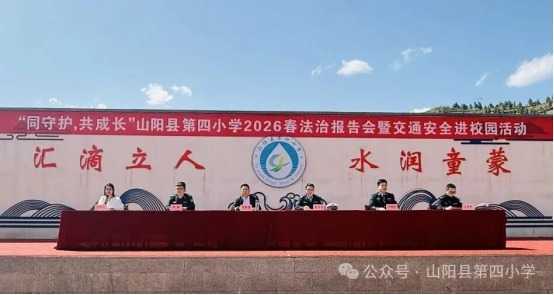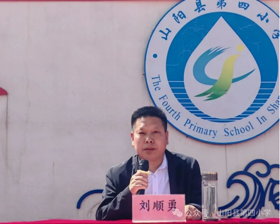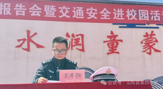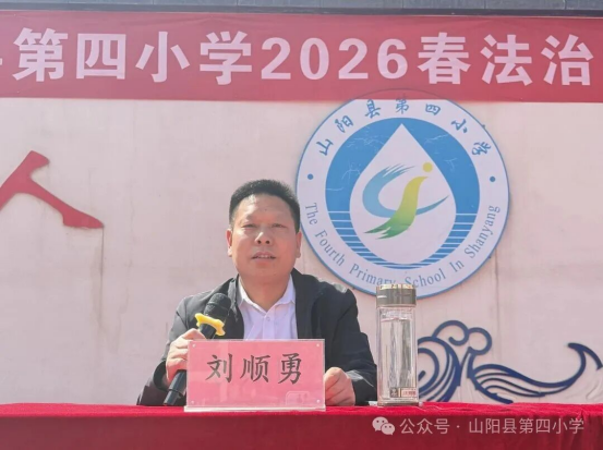 山阳县第四小学副校长刘顺勇同志发表致辞。他强调,青少年是祖国的未来、民族的希望,法治教育和交通安全教育是守护学生健康成长的重要屏障,希望全体师生以此次活动为契机,认真学习法律知识、严守交通规则,将法治观念和安全意识内化于心、外化于行,共同营造安全、文明、和谐的校园环境,为学生成长保驾护航。