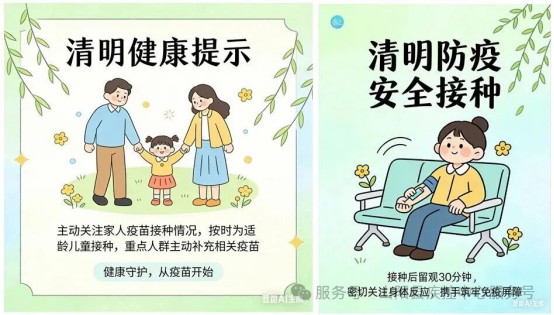 主动关注家人疫苗接种情况,按时为适龄儿童接种,重点人群主动补充相关疫苗。接种后留观30分钟,密切关注身体反应,携手筑牢免疫屏障。
