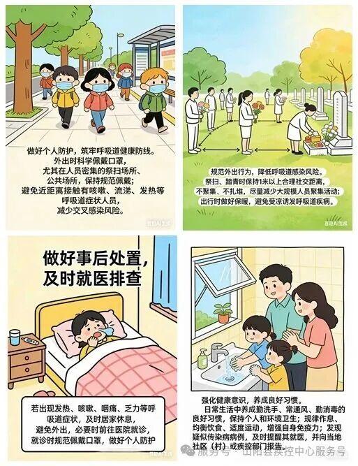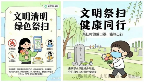 倡导鲜花、网络等绿色祭扫方式,杜绝焚烧纸钱、燃放鞭炮,减少空气污染。祭扫时佩戴口罩、错峰出行,患病群众尽量减少外出,守护自身与公共呼吸健康。