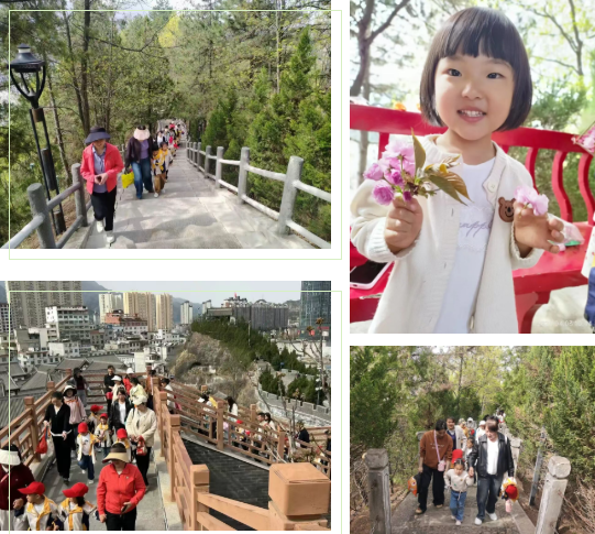 在老师的带领下,家长牵着孩子的手,沿着苍龙山的步道稳步前行。沿途,老师引导幼儿观察新绿的枝叶、绽放的野花、飞舞的蝴蝶,感受春风拂面、阳光和煦,讲解清明踏青的习俗。孩子们好奇地触摸树杆、闻花香、拾落叶,在真实的自然情境中探索、发现、惊叹。山路蜿蜒,却没有一个孩子喊累。他们互相鼓励着,像一群小小的探险家,用脚步丈量春天的长度。
