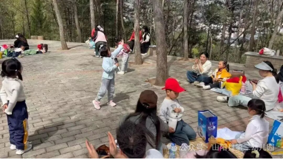 美食还在唇齿间留香,欢快的音乐便响了起来——孩子们的才艺秀、师幼互动、亲子游戏开始了!林子里瞬间欢腾起来......
