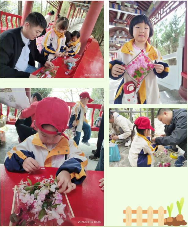·春日相框 小朋友们小心翼翼地把捡来的花瓣“装”进相框,仿佛把整个春天都留住了。