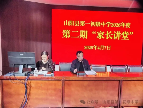 为了进一步推动家校合作,凝聚家校共育合力,助力孩子快乐学习,健康成长,4月7日18:40,商洛市山阳县第一初级中学在厚德楼六楼教师会议室开展了以“用心陪伴助花开 以身作则育良才”为主题的2026年度第二期“家长讲堂”活动。本期“家长讲堂”的主讲嘉宾是学校七(11)班学生家长代表,山阳县城关九年制学校英语教师杨珊。学校七、八、九年级家长代表共200余人参加了本次活动。“家长讲堂”由学校政教处主任王昌水主持。