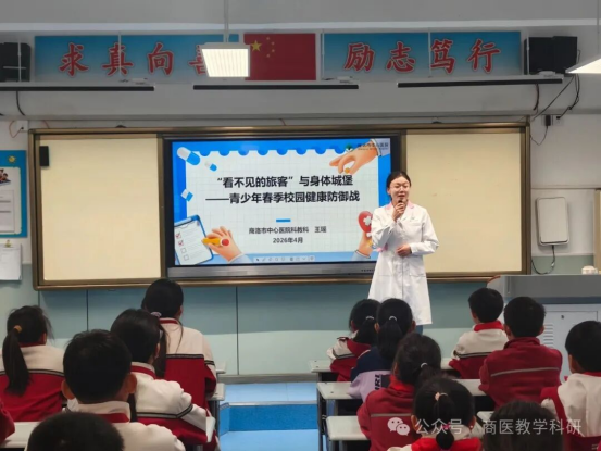 为深入贯彻落实科普惠民政策,弘扬科学精神,普及健康知识,切实守护青少年身心健康成长,4月8日,商洛市中心医院携手商洛市科学技术协会,精心组织开展“科技之春”校园健康科普专项活动。活动分上下午两个时段,分别走进商州区第十五小学、商洛市小学,由市中心医院10名骨干医护人员组成科普宣讲团,为同学们带来了一场内容丰富、形式多样的健康科普盛宴,以医者担当传递健康力量,以科学知识筑牢成长根基。