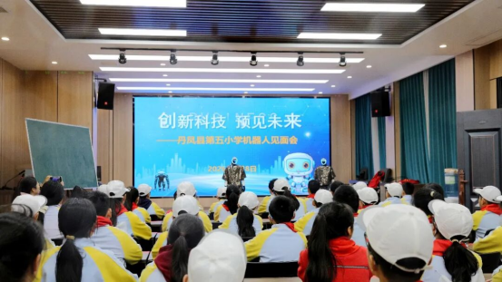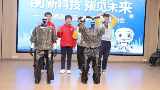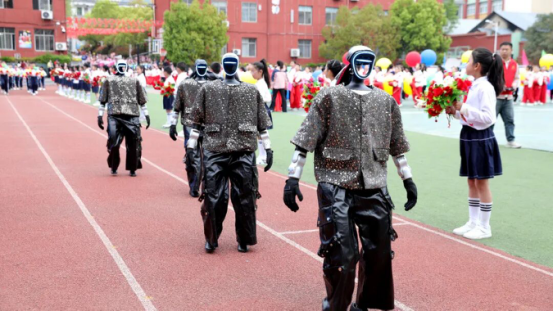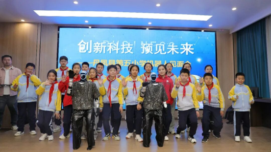 这场别出心裁的表演,不仅让同学们感受到了科技的魅力,更激发了大家对科技创新的探索热情,彰显了丹凤五小在素质教育与科技教育融合发展中的积极探索,赢得了全场师生的阵阵喝彩,大家纷纷与机器人合影留念。
