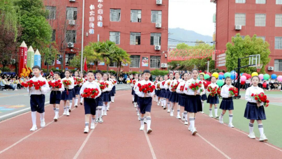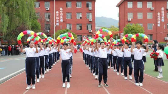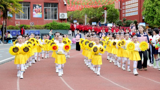 彩旗、花束、腰鼓、花环、秧歌方队逐一亮相,彩旗招展、花束摇曳、鼓点铿锵、创意满满,尽显少年的灵动与活力;乒乓球、牡丹花、风筝、舞蹈、篮球、啦啦操、小国旗、葵花方阵依次走过主席台,每一个方阵都独具特色,每一支队伍都精神抖擞,将童真与朝气展现得淋漓尽致。