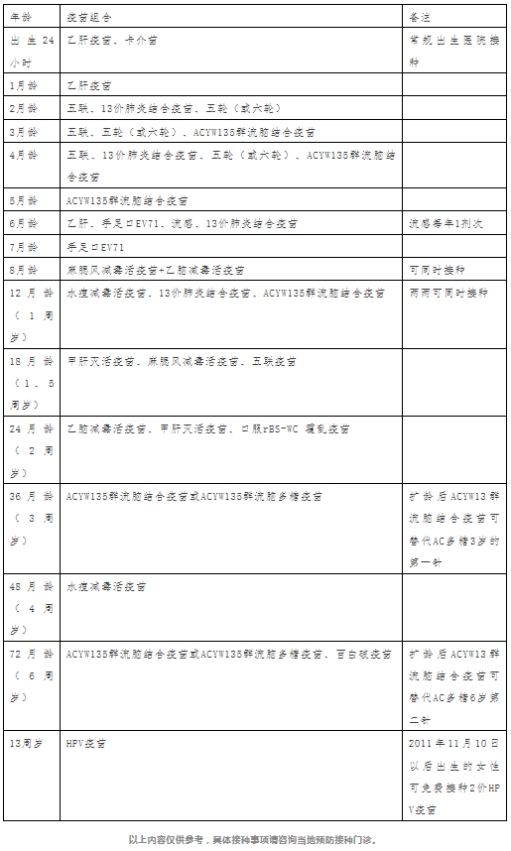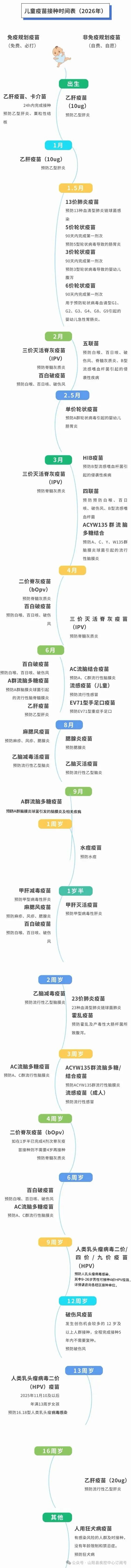 2026年推荐0-13岁儿童接种的疫苗免疫程序如下: