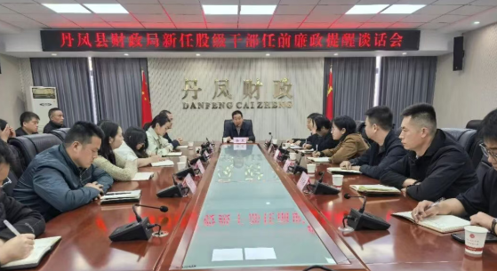 4月9日,商洛市丹凤县财政局组织召开新任股级干部任前廉政提醒谈话会。局党组书记、局长杨龙主持会议并作提醒谈话,局党组班子成员、新任股级干部及相关股室负责人参加会议。会议指出,财政岗位事关资金安全、民生保障与经济发展,责任重大、使命光荣,新任股级干部要深刻认识党风廉政建设的重要性,始终把纪律和规矩挺在前面,筑牢拒腐防变思想防线。