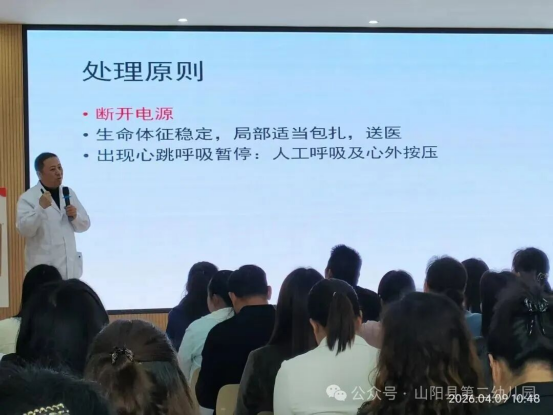 为进一步提高家长安全防范意识与应急处置能力,2026年4月9日商洛市山阳县第二幼儿园特邀西北妇幼驻山阳保健院专家李刚开展《儿童意外伤害防范与常见病家庭护理》专题健康讲座,为广大家长和教师开展了意外伤害预防、家庭护理实用指南及育儿科普知识。
