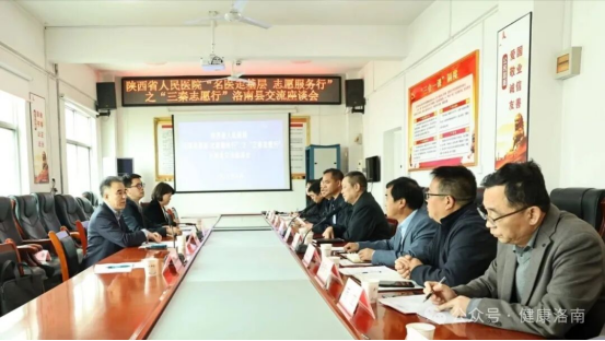活动前,陕西省人民医院副院长王建华及部分专家与县政协副主席赵康战、县卫健局局长雷军及县级三大公立医院书记、院长及部分人员在洛南县中医医院四楼会议室召开专题座谈会,围绕基层医疗发展现状、存在的短板不足、人才队伍建设、专科能力提升等方面展开深入交流探讨。