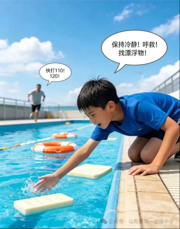 传授科学救援知识:教育孩子遇到同伴溺水时,切勿盲目下水施救,应立即寻求成人帮助或拨打110、120报警电话。
