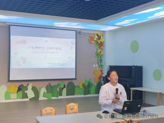 口腔科负责人上官厚旭通过图文并茂的PPT和互动问答等形式,用通俗易懂的语言向大家讲解了牙齿的结构、龋齿的危害以及如何正确刷牙。产科主任刘金玲围绕商南县医院“产检攒积分,分娩享优惠”惠民政策进行了重点解读,详细讲解了如何通过规范产检积累积分,以及积分兑换的具体流程和分娩优惠。