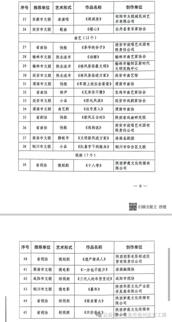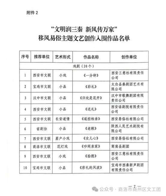 近日,从陕西省文学艺术界联合会传来喜讯:在全省“文明润三秦 新风传万家”移风易俗主题文艺创作活动评审中,商洛市商州区文工团原创花鼓小戏《量心尺》从全省230件参赛作品中脱颖而出,成功入选戏剧类优秀作品,是商洛市、商州区文艺创作的又一重要成果!
