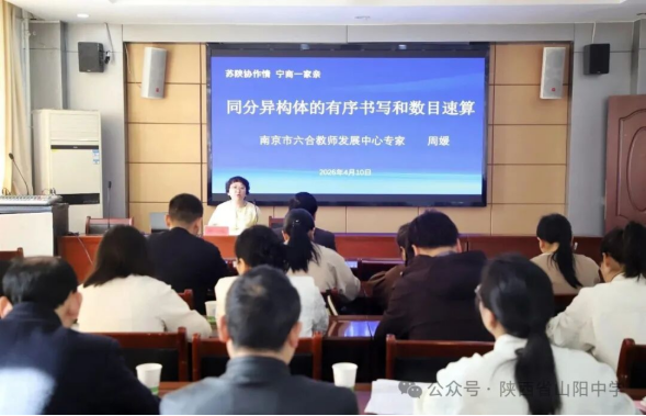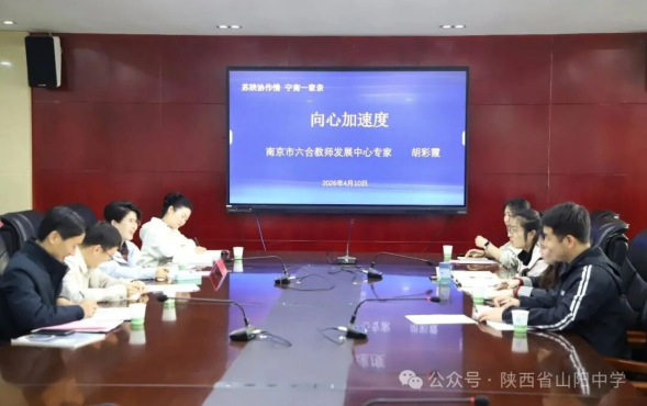 秦巴沐春风,教育谱新篇。为深化苏陕协作内涵,扎实推进教育人才“组团式”帮扶工作,2026年4月9日至12日,陕西省山阳中学特邀南京市六合区教育局教研专家及心理辅导专家张文芳老师团队,开展高一高二教学诊断暨2026届高考二三轮复课指导系列活动。山阳中学、第三中学、漫川中学、中村中学四所高中的教学管理干部及骨干教师齐聚一堂,以课为媒、以研促教,在交流互鉴中凝聚备考共识,在精准指导中夯实教学根基,让苏陕教育协作的“山海情”在秦巴大地落地生根。