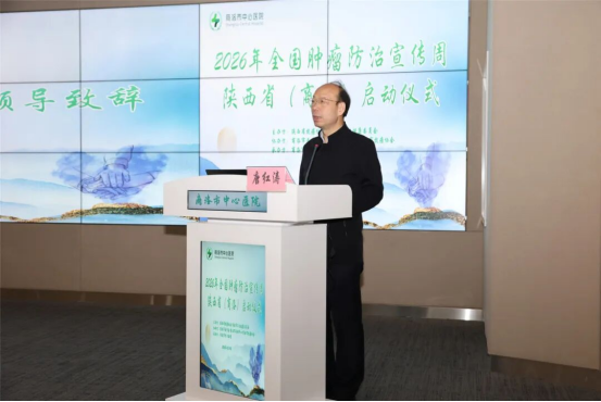 商洛市中心医院党委副书记、院长唐红涛回顾了医院建院87年来在肿瘤防治领域的坚守与担当,表示医院将以“一院三区”格局和省级重点学科优势为依托,持续深耕肿瘤诊疗技术,推动优质资源下沉基层。他发出三点倡议:强化龙头引领、扛起科普使命、深化协同协作,并郑重承诺:“让群众在家门口就能享受到规范、优质的肿瘤诊疗服务。”