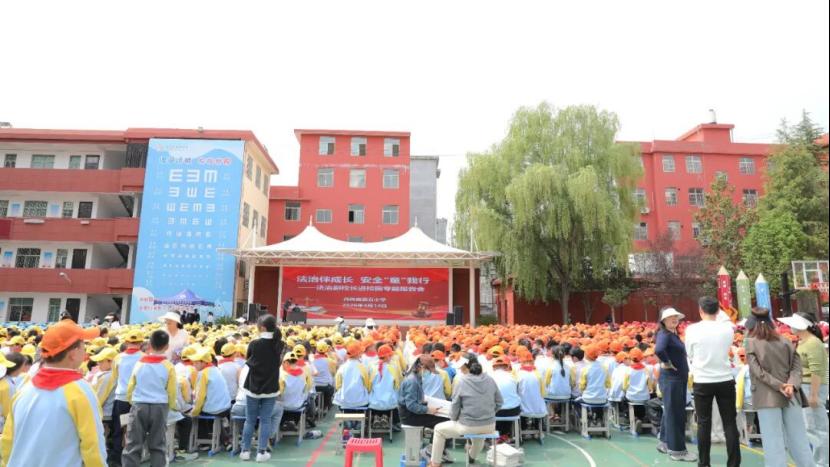 为进一步增强全体师生法治观念与安全防范意识,有效预防校园欺凌,筑牢校园安全防线,4月14日,商洛市丹凤县第五小学在操场隆重举行“法治伴成长 安全‘童’我行”法治副校长进校园专题报告会,全校师生参加报告会。
