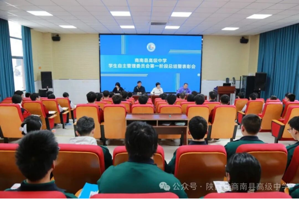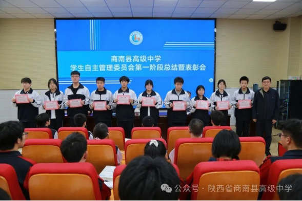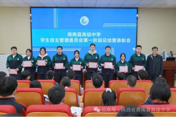 凝心聚力促管理,深耕细作再前行。本次总结表彰培训会既是一次复盘的总结会,更是一次蓄力奋进的部署会、赋能成长的培训会。下一步,陕西省商南县高级中学学生自主管理委员会将以本次会议为新起点,正视短板、细化标准、规范流程、精进能力,以更严谨的态度、更务实的作风、更饱满的热情参与校园自主管理工作,充分发挥学生自我管理、自我教育、自我服务的作用,坚守初心、履职尽责,全力守护有序、文明、和谐的校园环境,持续助推学校德育建设与校园管理水平、育人质量稳步提升!