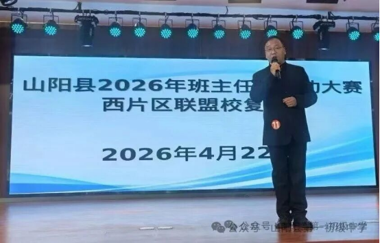 为深入推进班主任队伍专业化建设,全面落实立德树人根本任务,4月22日,商洛市山阳县2026年班主任基本功大赛西片区联盟校复赛在一中赛点圆满落幕。本次赛事由县教育和体育局主办,县第一初级中学承办,县西片区联盟校优秀班主任齐聚一堂,同台竞技,共展育人风采。