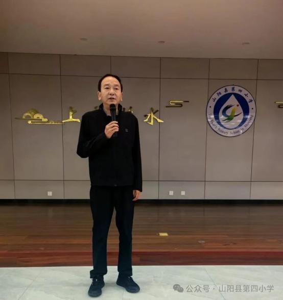 山阳县第四小学校党支部书记、校长祝巍巍校长发表讲话。他指出,基本功是教师立身之本、育人之基,希望全体参赛教师以赛促学、以赛促练,赛出水平、赛出风格;勉励大家坚守教育初心,锤炼过硬本领,以更扎实的素养、更饱满的热情投身教育事业,为学区教育高质量发展贡献力量。校长的话语鼓舞人心、催人奋进,为本次大赛注入温暖与力量。