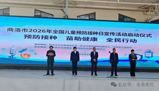 2026年4月24日,以“预防接种 苗助健康 全民行动”为主题的商洛市第40个“全国儿童预防接种日”宣传活动启动仪式在洛南县举行。商洛市卫健委副主任林建军、商洛市疾控中心主任任占良、洛南县人大常委会副主任唐芳、洛南县政府副县长张玉等领导出席启动仪式,并现场指导宣传义诊活动。