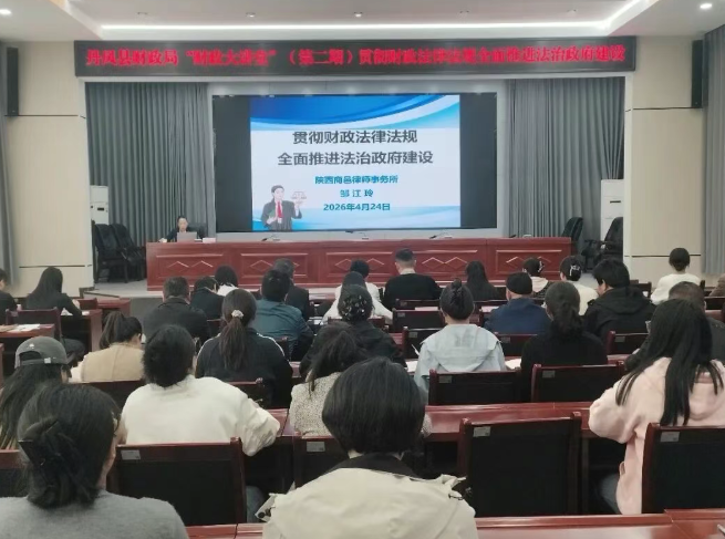 4月24日,商洛市丹凤县财政局举办第二期“财政大讲堂”,邀请陕西商邑律师事务所副主任、高级法律顾问邹江玲律师以“贯彻财政法律法规,全面推进法治财政建设”为主题开展专题讲座。局领导班子、机关各股室、下属单位负责人及全体干部80余人参加培训。