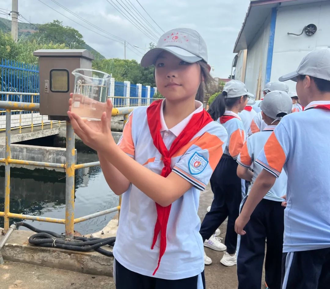 工作人员带领同学们参观了粗细格栅、生化池、二沉池和消毒等一系列污水处理设备单元,向同学们介绍了污水处理的工艺流程、环保设施运行机制,详细讲解了污水变清流的全过程。同学们边听边看边问,真实体验了生活污水经一步步科技处理,最终变成清澈的可回用水,认识到污染治理,保护环境的重要性,体会了环保工作人员的艰辛,建立起爱水护水的环保意识。