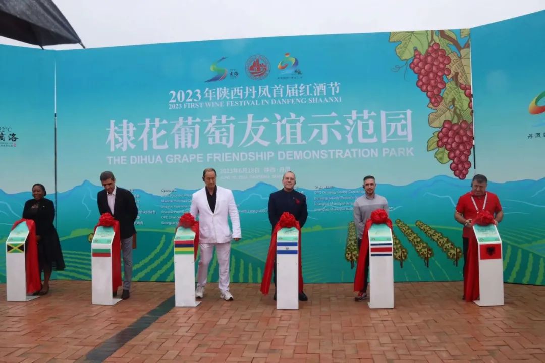 6月18日下午,陕西省商洛市丹凤县棣花葡萄友谊示范园揭幕,该活动是“一城红酒·百年味道”2023年陕西丹凤首届红酒节系列活动之一。