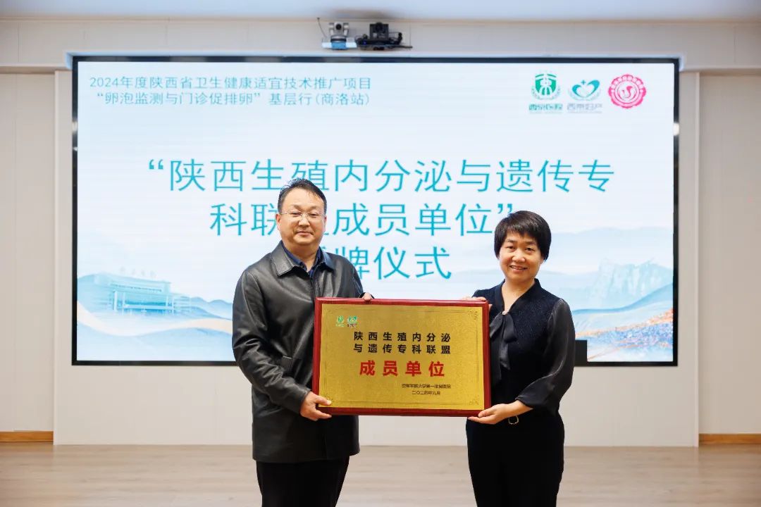 空军军医大学第一附属医院生殖中心张建芳主任阐述推广“卵泡检测与门诊促排卵”项目的重要性及必要性,并为商洛市妇幼保健院授牌“陕西生殖内分泌与遗传专科联盟成员单位”。