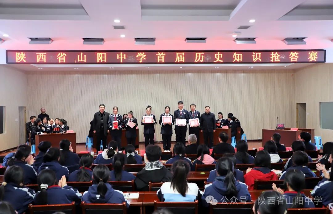 “欲知大道,必先为史”。为了更大程度发挥历史学科的教育和社会功能,提高学生对历史学科的学习兴趣,拓宽其学习历史的视野,丰富校园生活并培养其竞争意识与团队合作精神,山阳中学历史学科组特举办山阳中学首届“历史知识抢答赛”活动。本次活动由山阳中学教研室及历史学科组主办、高二年级历史备课组承办,经过层层选拔,于2024年11月28日晚7点20分在学校尚德楼六楼会议室隆重举行。