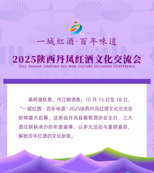 秦岭漫秋意,丹江酿酒香。10 月 15 日至 18 日,“一城红酒・百年味道”2025 陕西丹凤红酒文化交流会即将盛大启幕,这场由丹凤县葡萄酒协会主办、三大酒庄联袂承办的年度盛事,以多元活动与重磅嘉宾,解锁百年红酒的文化新章。