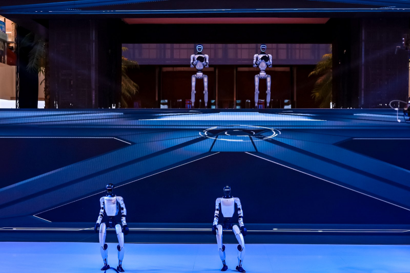 开幕式上,机器人阵列以精准而富有未来感的舞步,配合声光效果震撼开场,瞬间点燃全场热情,生动诠释科技与时尚的共生关系。更有“盲盒”式机械LED屏构建的动态舞台,伴随秀程推进不断变换组合结构,营造出充满未知与惊喜的视觉空间,寓意时尚创作的无限可能。