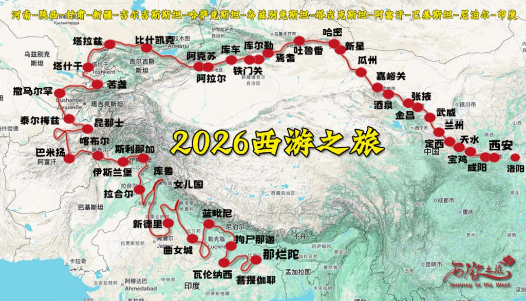 据悉,“2026西游之旅”大型国际文化交流活动代表团将于2026年8月在西安大雁塔前正式出征,途径河西走廊,新疆全域,自别迭里山口进入中亚,完成中亚四国(吉尔吉斯斯坦、哈萨克斯坦、乌兹别克斯坦、塔吉克斯坦)和南亚四国(阿富汗、巴基斯坦、尼泊尔、印度)的真迹穿行,最终抵达玄奘法师西天取经终点—印度那烂陀寺。作为整个征程的历史原点与文化起点,陕西的深度参与,将为这项大型国际文化交流活动奠定坚实基石。