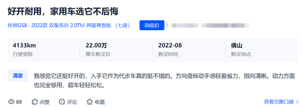 一直以来,广汽传祺始终奉行长期主义,将品质和安全放在第一位,为消费者带来更高品质、更安全的用车体验。在全新第二代GS8的研发过程中,广汽传祺就投入超过320台整车,经历70个以上典型路况及极端环境测试点,整车耐久测试达到400万公里,全方位确保产品全生命周期的高品质,也让GS8收获了像“买了不后悔”、“崛起的国产车”、“好开耐用”、“非常皮实抗造”等众多车主的好评。