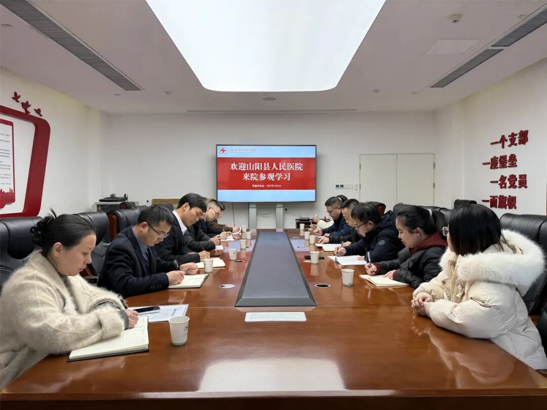为加强医联体建设,贯彻落实中组部和省市关于干部人才“组团式”帮扶的部署要求及完成市政府工作报告中商洛市中心医院“三甲”复审、山阳县人民医院三级医院创建工作,3月4日下午,应山阳县人民医院要求,由该院业务副院长汪功理带队,组织该院医务科、创建办、数据中心等科室一行6人来院参观学习商洛市中心医院在三级医院评审中临床医技业务提升及行政高效管理经验。商洛市中心医院副院长屈建强出席,质控科主任邹龙、数据中心副主任梁伟、医务部干事陈旭等参加。交流座谈会由我院等级评审办主任杨鹏主持。