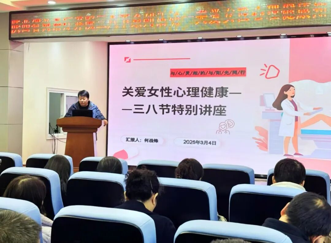 为庆祝第115个“三八”国际劳动妇女节,传递“自尊、自信、自立、自强”的女性力量,关爱女性职工心理健康,帮助提升心理调适能力,3月4日,陕西商洛疗养院举办“与心灵相约 与阳光同行”心理健康知识讲座,邀请国家二级心理治疗师、陕西商洛疗养院精神科主任何战锋主讲,全院职工参加活动。